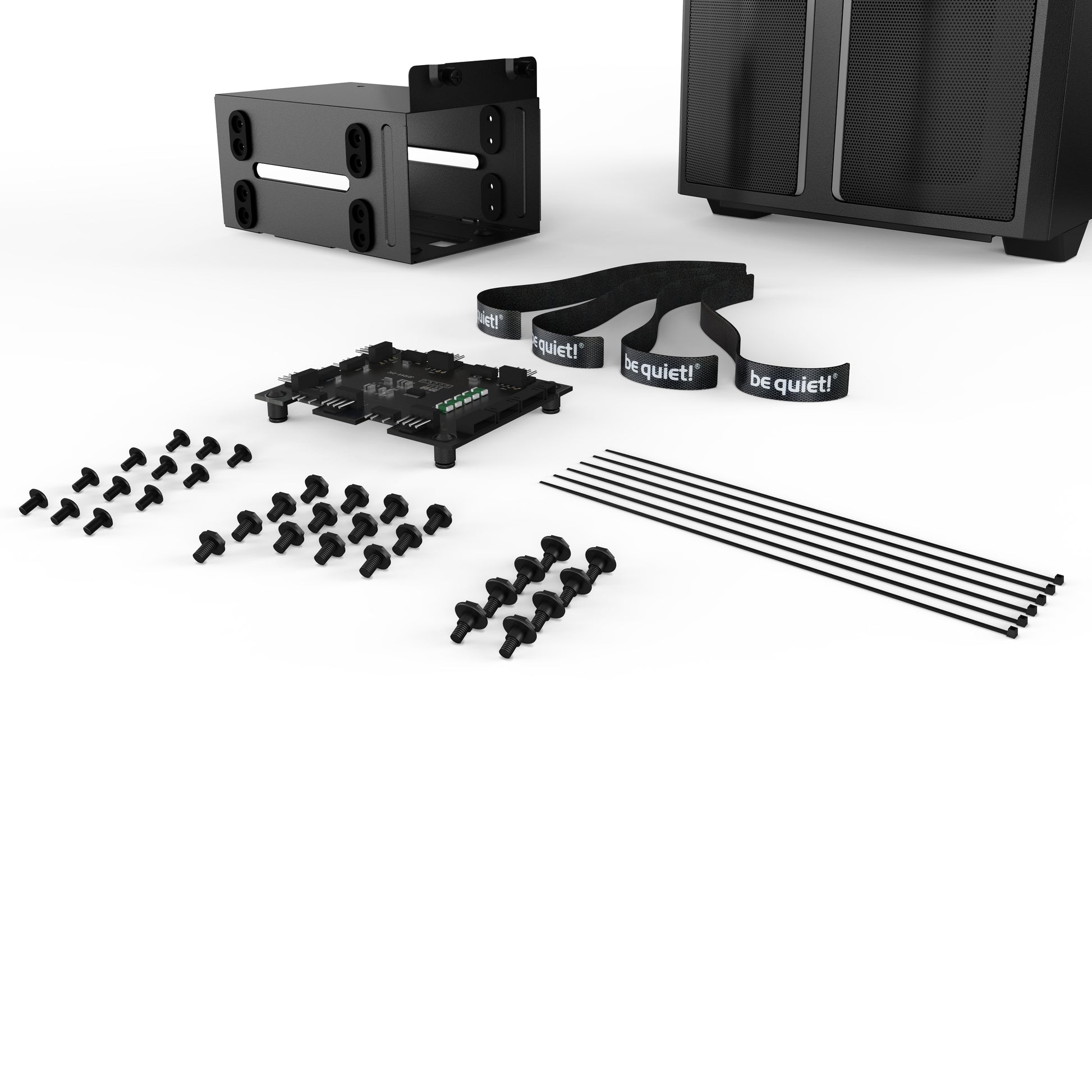 Y magníficas posibilidades de enrutamiento de cablesLa Pure Base 500 FX Black ofrece diversas posibilidades para instalar hasta 4 SSD en total. Se pueden instalar 2 para una visión prominente a través del panel de la ventana. Para ocultar cualquier cable indeseado, la caja ofrece excelentes opciones de enrutamiento de cables.